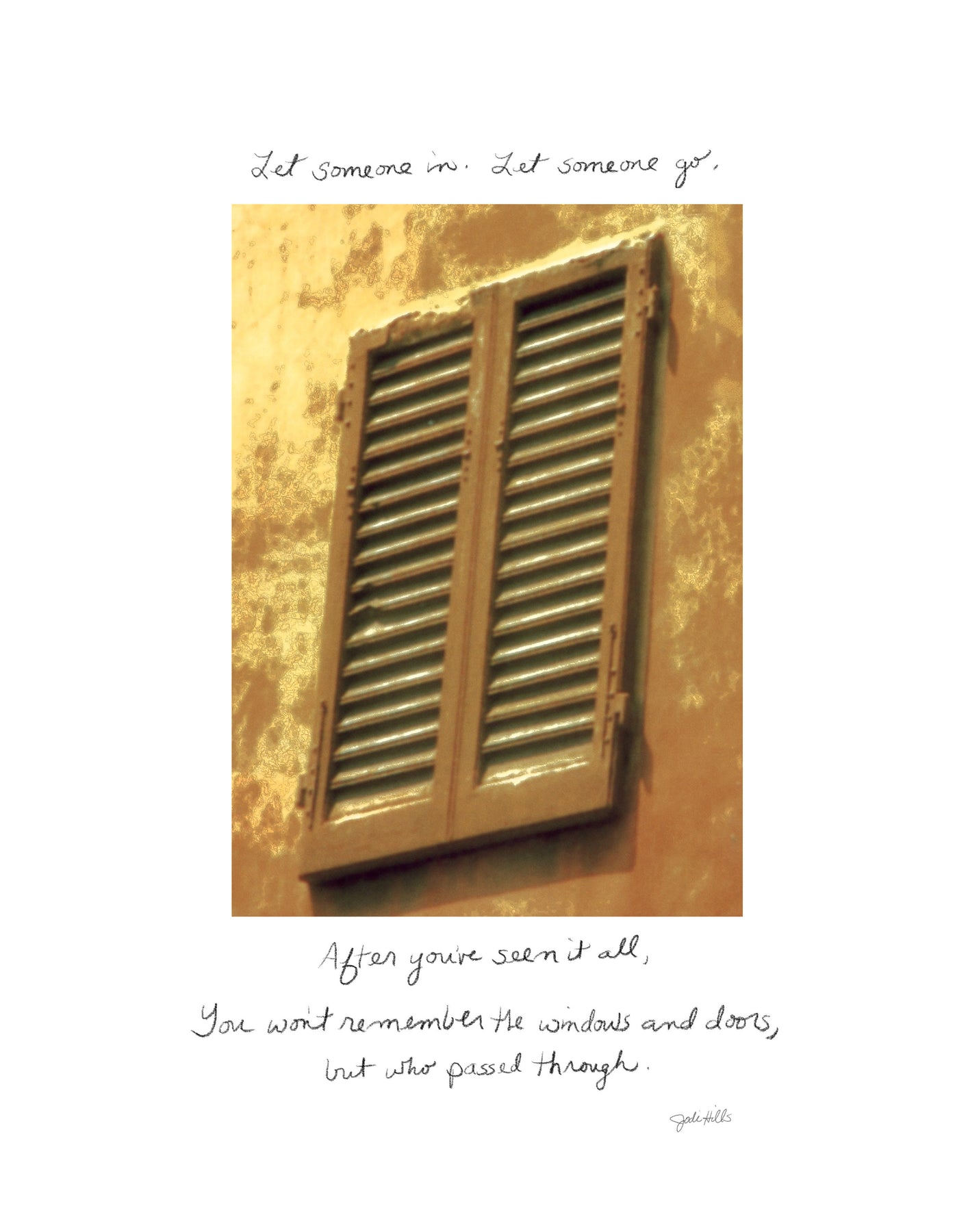 After you've seen it all, you won't remember the windows and doors, but who passed through.
